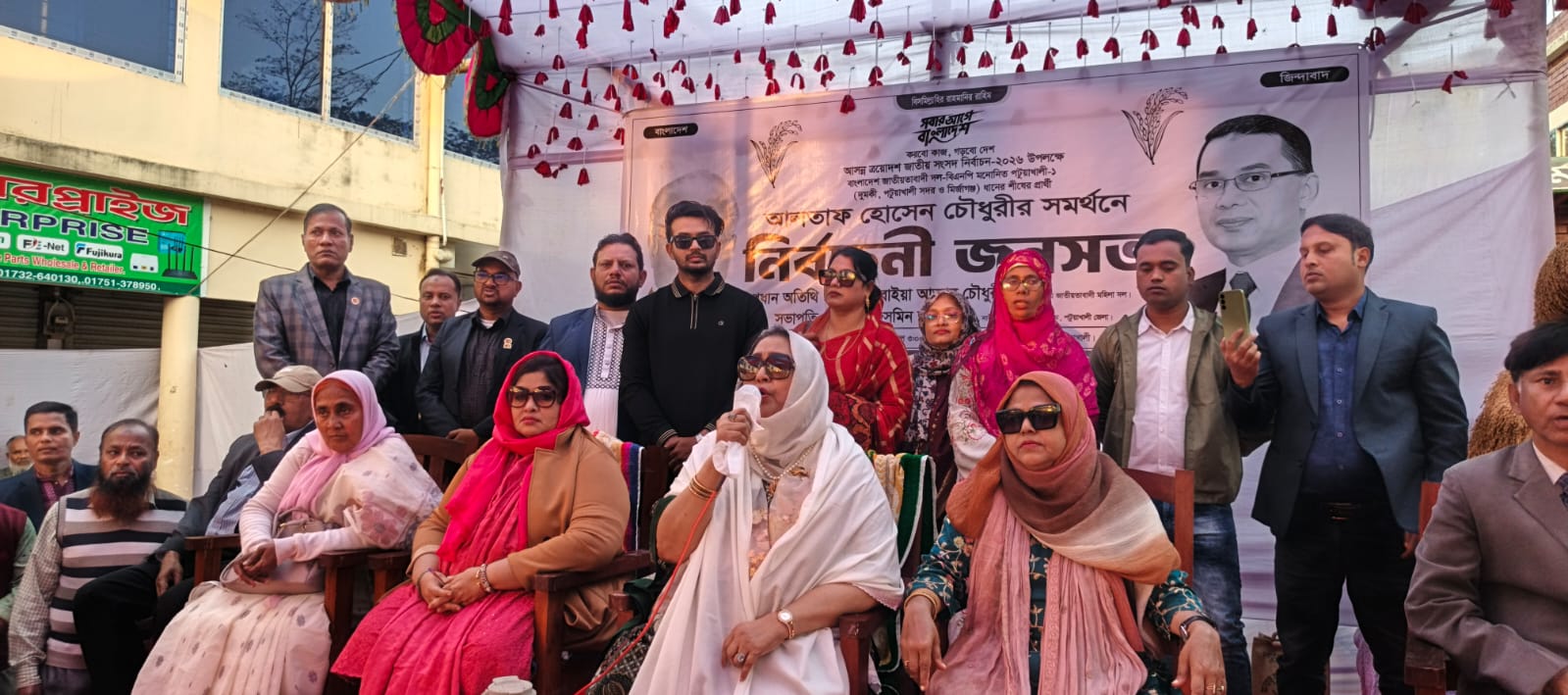 ত্রয়োদশ জাতীয় সংসদ নির্বাচনকে সামনে রেখে পটুয়াখালী-১ (মির্জাগঞ্জ-দুমকি ও সদর) আসনে বিএনপির প্রার্থী এয়ার ভাইস মার্শাল (অব.) আলতাফ হোসেন চৌধুরীর পক্ষে দুমকিতে উঠান বৈঠক অনুষ্ঠিত হয়েছে। এ সময় তার সহধর্মিণী মিসেস সুরাইয়া আক্তার চৌধুরী ১২ ফেব্রুয়ারি সারাদিন ধানের শীষে ভোট দেওয়ার আহ্বান জানান।
