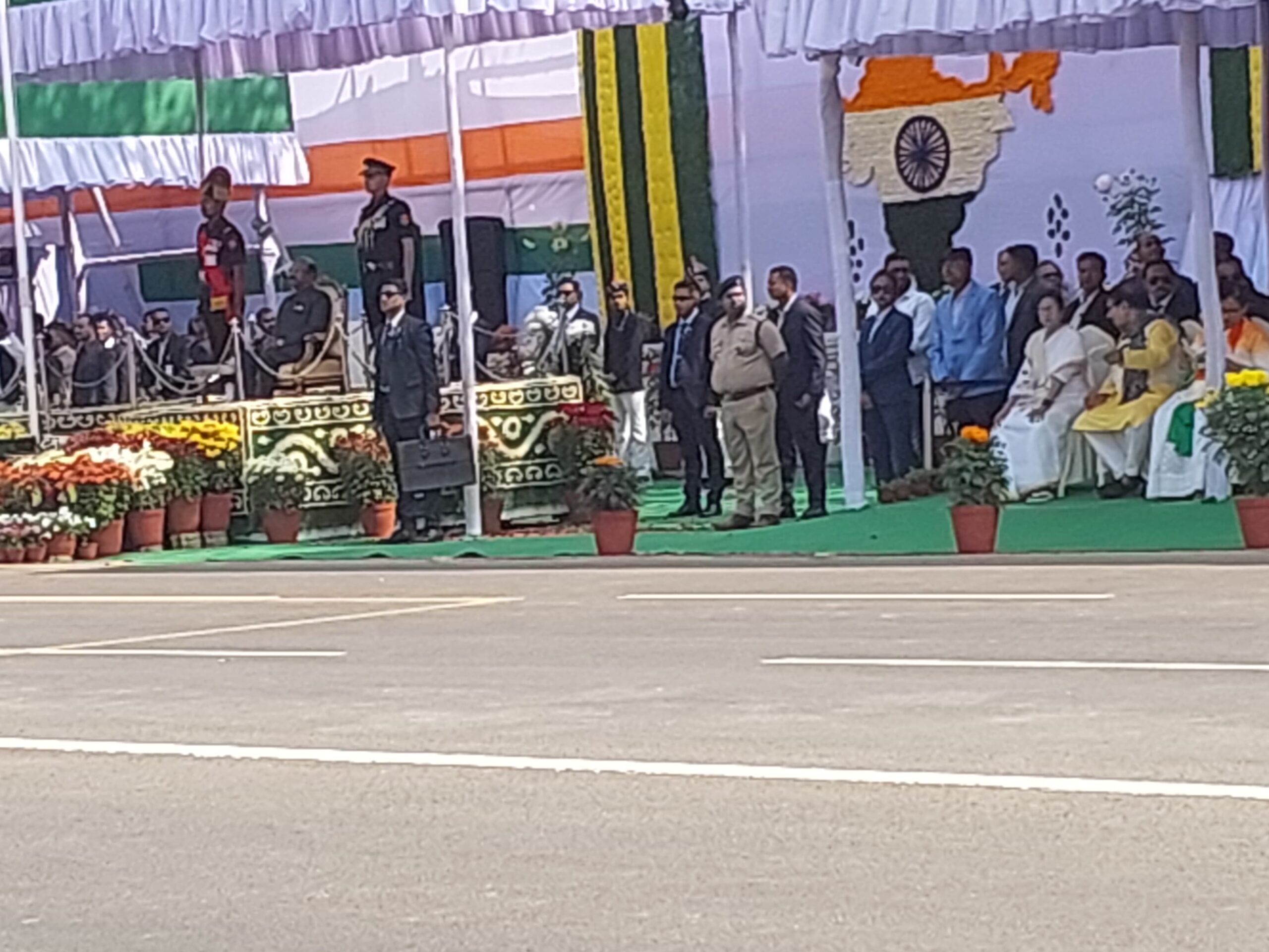 আজ ২৬ শে জানুয়ারী রবিবার, ৭৬ তম প্রজাতন্ত্র দিবস, কলকাতার রেড রোডে, কুচকাওয়াজের মধ্য দিয়ে এবং বিভিন্ন রকম সাংস্কৃতিক অনুষ্ঠানের মধ্য দিয়ে, জাতীয় পতাকা উত্তোলন এবং বিভিন্ন অনুষ্ঠান শুরু হয়, মাননীয় মুখ্যমন্ত্রী সহ মন্ত্রীদ্বয় এবং পুলিশ কমিশনার থেকে শুরু করে মিলিটারি কমান্ডো পর্যন্ত উপস্থিত ছিলেন।