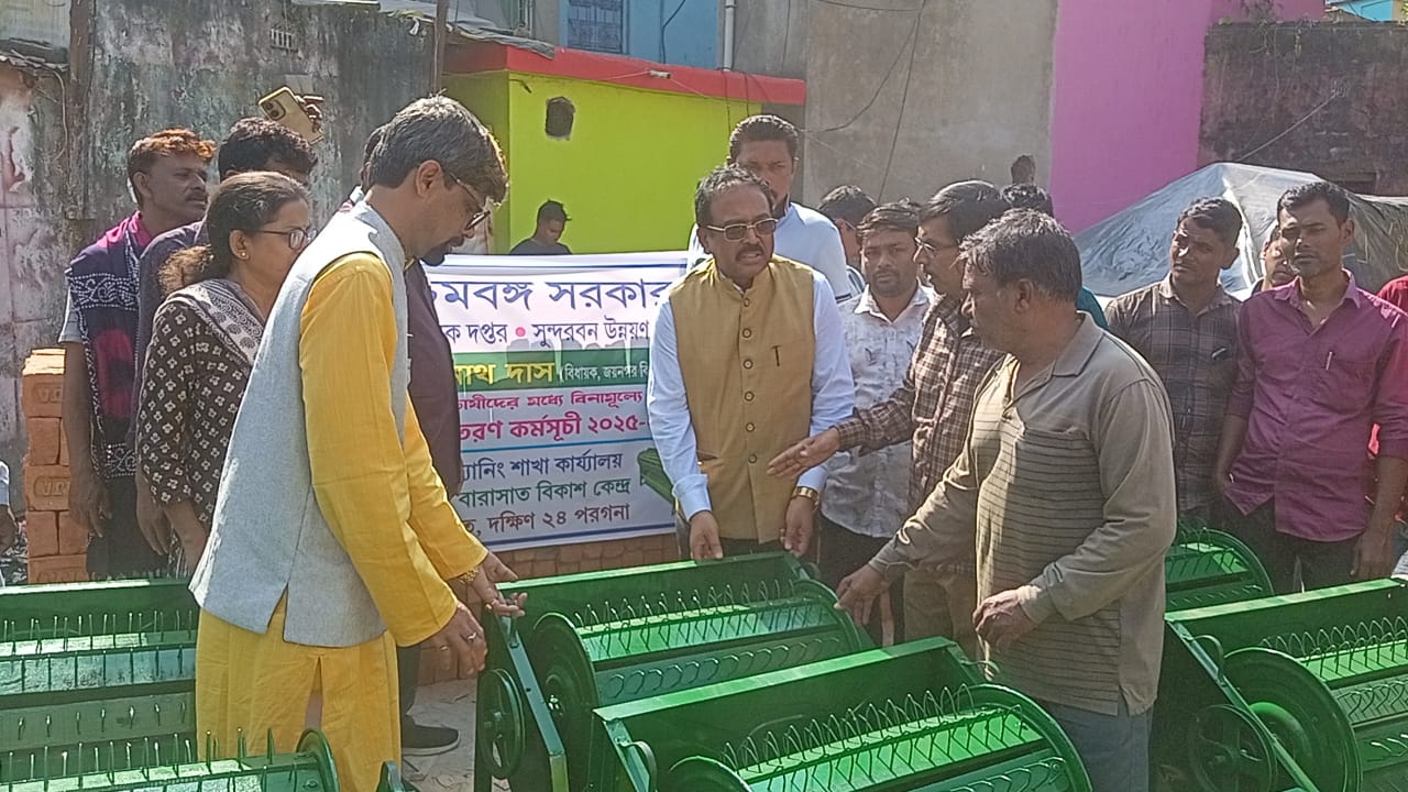 মোমিন আলী লস্কর,জয়নগর,ভারত(আন্তর্জাতিক) গ্রামীন এলাকার কৃষিজীবীদের উজ্জীবিত করতে একাধিক ব্যবস্থা গ্রহণ করেছে রাজ্য সরকার। আর সেই প্রকল্পে পিছিয়ে নেই দক্ষিণ চব্বিশ পরগনা জেলার জয়নগর এক নম্বর ব্লক।ক্ষুদ্র ও প্রান্তিক চাষীদের মধ্যে বিনামূল্যে কৃষি উপকরণ বিতরণ কর্মসূচি হল জয়নগর বিধানসভার দক্ষিণ বারাসাতে। রাজ্য সরকারের সুন্দরবন বিষয়ক দপ্তর ও সুন্দরবন উন্নয়ন পর্ষদ এর সহযোগিতায় জয়নগরের বিধায়ক বিশ্বনাথ দাসের উপস্থিতিতে জয়নগর এক নম্বর ব্লকের হরিনারায়নপুর ও উত্তর দুর্গাপুর অঞ্চলের ৫০ জন কৃষককে কীটনাশক স্প্রে মেশিন ও ২৫ জন কৃষককে ধান ঝাড়ার মেশিন বিতরণ করলেন জয়নগরের বিধায়ক বিশিষ্ট শিক্ষক বিশ্বনাথ দাস। উপস্থিত জয়নগর বিধানসভার কেন্দ্রের বিধায়ক বিশিষ্ট শিক্ষক বিশ্বনাথ দাস,