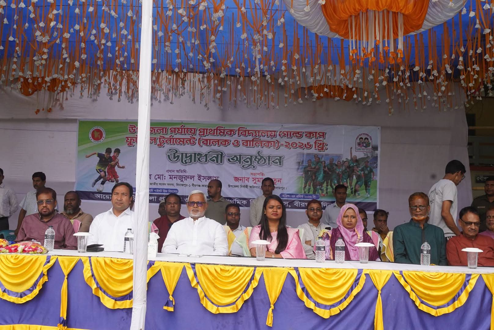 রনজিৎ সরকার রাজ,(দিনাজপুর) প্রতিনিধি: দিনাজপুরের বীরগঞ্জ উপজেলায় প্রাথমিক বিদ্যালয় পর্যায়ের বালক ও বালিকা গোল্ডকাপ ফুটবল টুর্নামেন্ট-২০২৬ এর উদ্বোধন করা হয়েছে।উপজেলা নির্বাহী অফিসার সুমা খাতুনের সভাপতিত্বে প্রধান অতিথি হিসেবে উপস্থিত থেকে টুর্নামেন্টের উদ্বোধন করেন দিনাজপুর-১ (বীরগঞ্জ-কাহারোল) আসনের সংসদ সদস্য মোঃ মনজুরুল ইসলাম।