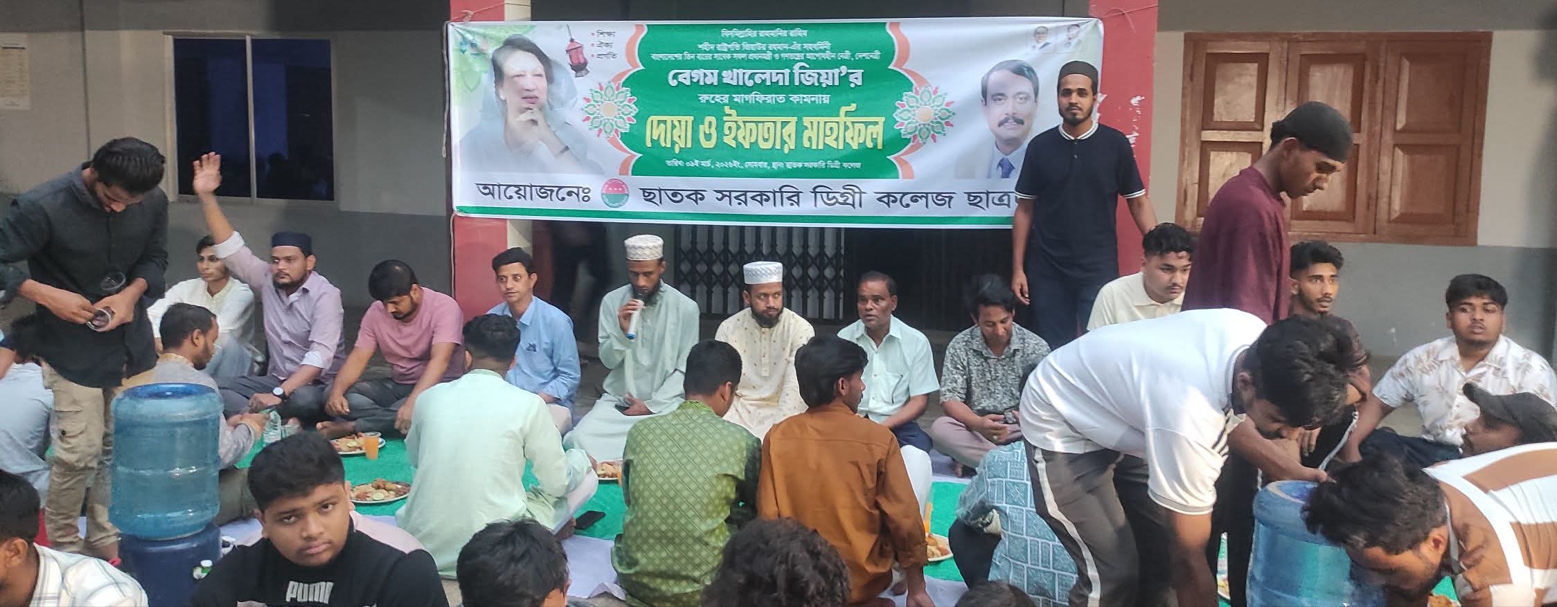 দেশনেত্রী ও সাবেক প্রধানমন্ত্রী মরহুমা বেগম খালেদা জিয়ার রুহের মাগফেরাত কামনায় ছাতক ডিগ্রি কলেজ ছাত্রদলের উদ্যোগে কলেজ প্রাঙ্গনে ইফতার ও দোয়া মাহফিল এবং শহরে ছিন্নমূল মানুষের মাঝে ইফতার বিতরণ করা হয়েছে।