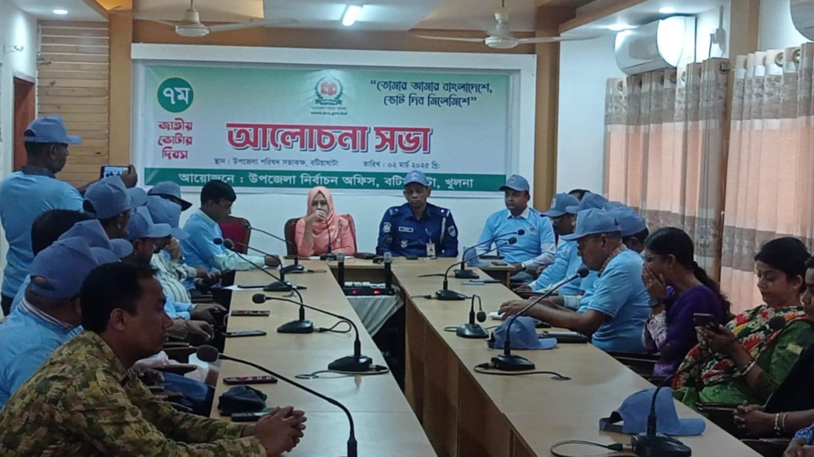 রিপন রায়,বটিয়াঘাটা প্রতিনিধি: তোমার আমার বাংলাদেশে,ভোট দিব মিলেমিশে" এই প্রতিপাদ্য গতকাল রবিবার সকাল ১০ বটিয়াঘাটা উপজেলা নির্বাচন অফিসের আয়োজনে জাতীয় ভোটার দিবস -২০২৫ উদযাপন উপলক্ষ্যে আলোচনা সভা ও বর্ণাঢ্য র্যালী উপজেলা নির্বাহী অফিসার হোসনে আরা তান্নি'র সভাপতিত্বে স্থানীয় উপজেলা পরিষদ সম্মেলন কক্ষে অনুষ্ঠিত হয় । উপজেলা নির্বাচন কর্মকর্তা অপূর্ব কুমার বিশ্বাস'র স্বাগত বক্তব্যের মধ্য দিয়ে অন্যান্যের উপস্থিত ছিলেন উপজেলা স্বাস্থ্য ও পরিবার পরিকল্পনা কর্মকর্তা ডাঃ ওয়াহিদুজ্জামান, প্রাণিসম্পদ অফিসার ডাঃ তরিকুল ইসলাম, কৃষি অফিসার কৃষিবিদ আবু বকর সিদ্দিক, সিনিয়র মৎস্য কর্মকর্তা মোঃ সেলিম সুলতান, প্রকৌশলী গৌতম কুমার বিশ্বাস, থানা অফিসার ইনচার্জ মোঃ মোস্তফা খায়রুল বাশার,মাধ্যমিক শিক্ষা অফিসার জাহিদুর রহমান, প্রাথমিক শিক্ষা অফিসার জিএম আলমগীর কবির, সমাজ সেবা কর্মকর্তা নিগার সুলতানা,
