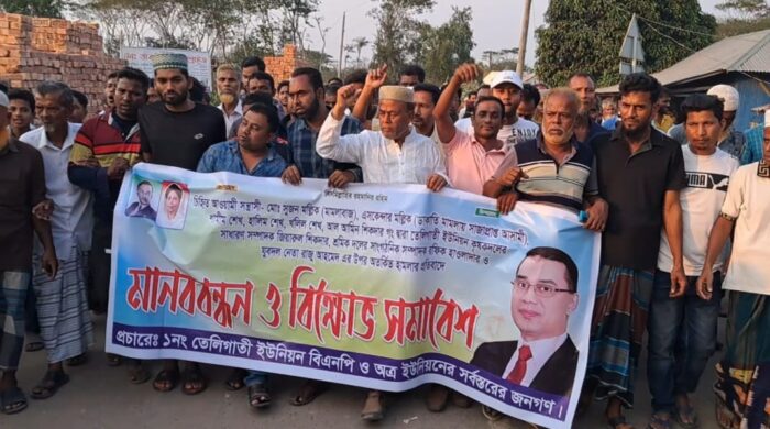 মোরেলগঞ্জ প্রতিনিধি: বাগেরহাটের মোরেলগঞ্জে বিএনপির নেতাকর্মীদের ওপর হামলা ও আওয়ামী দোসরদের দলে ঠাই দেওয়ার প্রতিবাদে বিক্ষোভ সমাবেশ ও মানববন্ধন করেছে বিএনপি। মঙ্গলবার বিকেল ৫টার দিকে তেলিগাতী ইউনিয়ননের হেড়মা বাজার এলাকায়