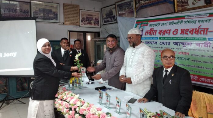 মোঃ রুহুল আমিন পারভেজ জেলা প্রতিনিধি জয়পুরহাট: জয়পুরহাট জেলা আইনজীবী সমিতির নবাগত আইনজীবীদের নবীন বরণ ও সংবর্ধনা প্রদান করেছেন জাতীয়তাবাদী আইনজীবী ফোরাম জয়পুরহাট জেলা শাখা। উক্ত সংবর্ধনা অনুষ্ঠানের প্রধান অতিথি