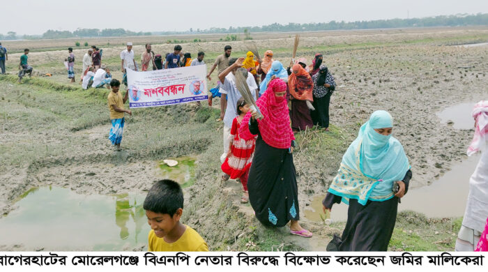 দৈনিক ইবি নিউজ : বাগেরহাটের মোরেলগঞ্জে বহরবুনিয়া গ্রামে স্থানীয় পেশীশক্তির বলে ৮৫ বিঘা একটি মৎস্য ঘের দখলে পায়তারা করছে একটি প্রভাবশালী মহল বলে অভিযোগ উঠেছে। এ ঘটনার প্রতিবাদে জমির মালিকেরা